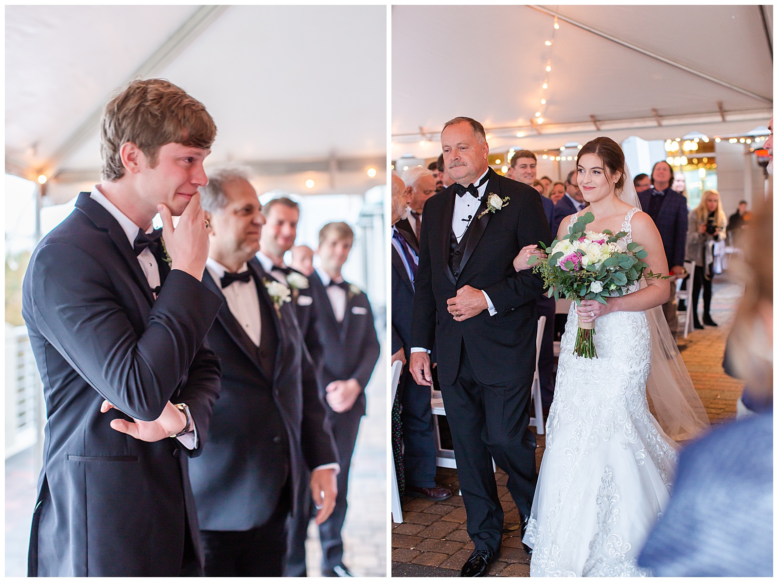 Honestly, I think this back up plan turned out to be even better than the original plan. Why? Because every time Brenna walks through her parent’s front door, she’s going to remember her dad’s face as he saw his little girl for the first time in her wedding gown. When you see the big windows in the bedroom, I hope you will remember when your mom gave you the gift of your hanky made from your Christening bonnet. When you gather on the back porch for football games, everyone will reminisce about Brenna and Trey’s emotional first look. Where Trey had all of us in tears as he read every significant date to Brenna that had lead them to this point. From sitting behind Brenna in high school calculus class, to their first date at Carrabba’s, to boiled peanuts for the first time (or as we call it in the south “bowllled peanuts”), to the time that he asked Brenna to marry him at the Clemson football game.